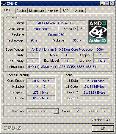 Результат разгона AMD Athlon 64 X2 (Manchester)