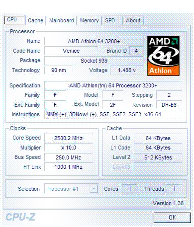 | Процессор (ядро) | AMD Athlon 64 (Venice) |