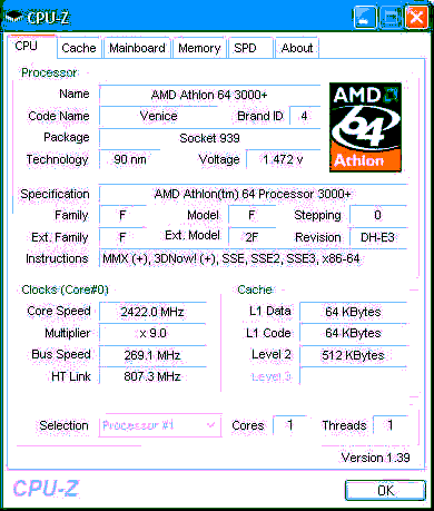 | Процессор (ядро) | AMD Athlon 64 (Venice) |