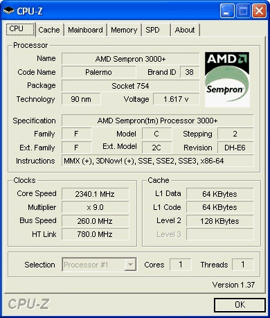 | Процессор (ядро) | AMD Sempron (Palermo) |