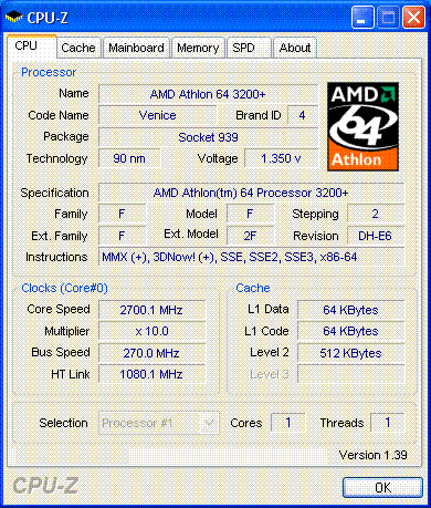 | Процессор (ядро) | AMD Athlon 64 (Venice) |
