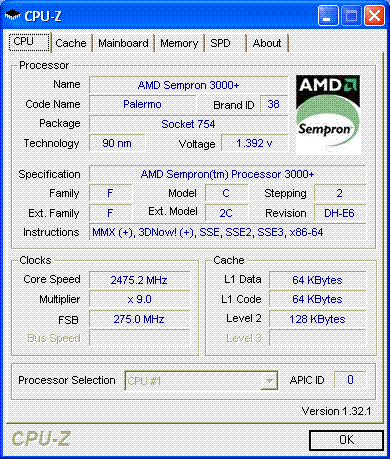 | Процессор (ядро) | AMD Sempron (Palermo) |