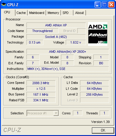 | Процессор (ядро) | AMD Athlon XP (Thoroughbred) |