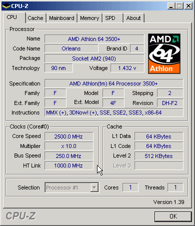 | Процессор (ядро) | AMD Athlon 64 (Orleans) |
