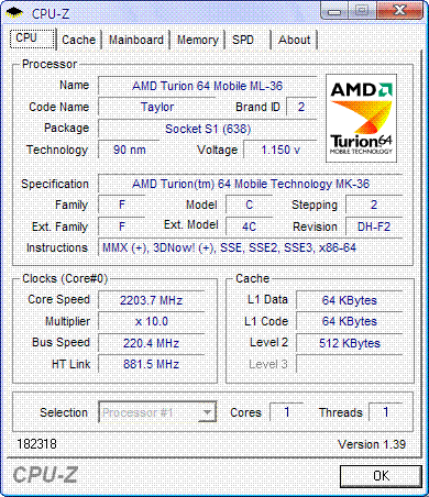 Результат разгона AMD Mobile