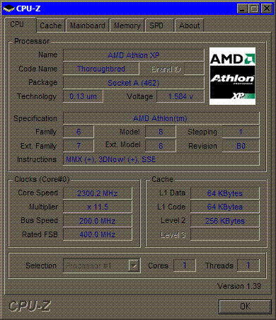 | Процессор (ядро) | AMD Athlon XP (Thoroughbred) |