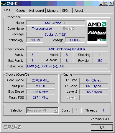 | Процессор (ядро) | AMD Athlon XP (Thoroughbred) |