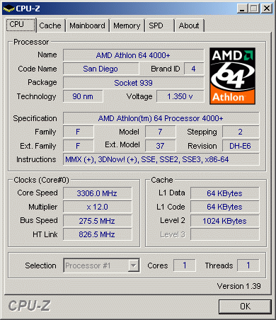 | Процессор (ядро) | AMD Athlon 64 (San Diego) |