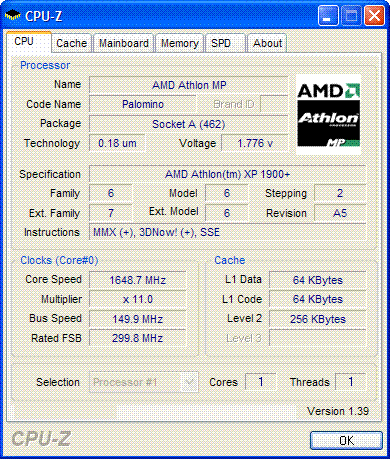 | Процессор (ядро) | AMD Athlon XP (Palomino) |