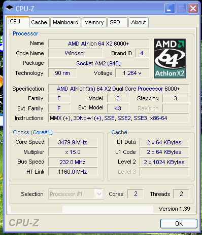 | Процессор (ядро) | AMD Athlon 64 X2 (Windsor) |
