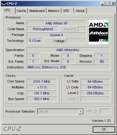 | Процессор (ядро) | AMD Athlon XP (Thoroughbred) |