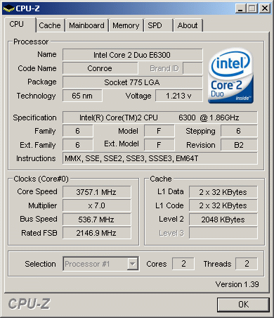| Процессор (ядро) | Intel Core 2 Duo (Conroe-2M) |