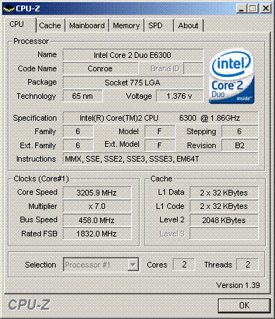 | Разгон, максимально стабильная частота (FSB x Ratio) | 3206 (458 x 7.0) |