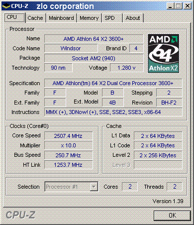 | Процессор (ядро) | AMD Athlon 64 X2 (Windsor) |