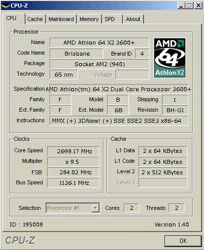 | Процессор (ядро) | AMD Athlon 64 X2 (Brisbane) |