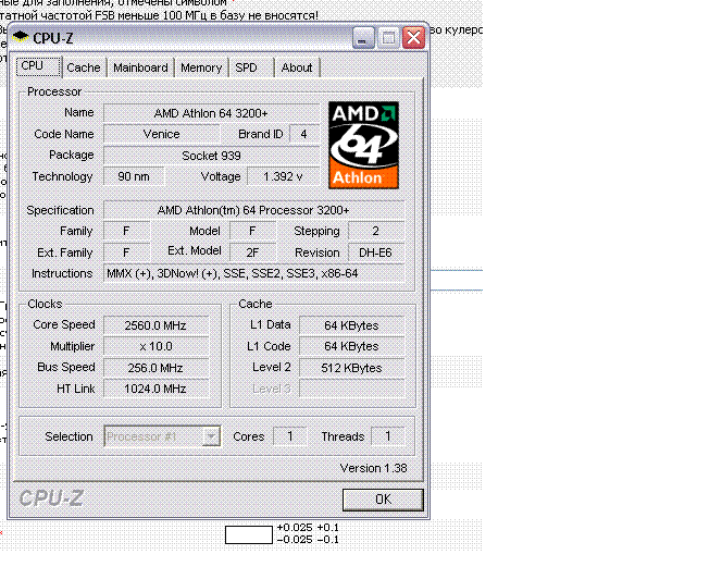 | Процессор (ядро) | AMD Athlon 64 (Venice) |