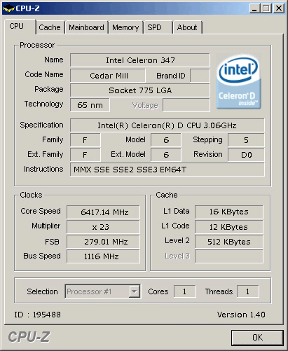 | Процессор (ядро) | Intel Pentium 4 (CedarMill) |