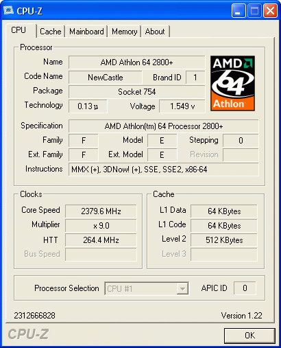Результат разгона AMD Athlon 64 (NewCastle)
