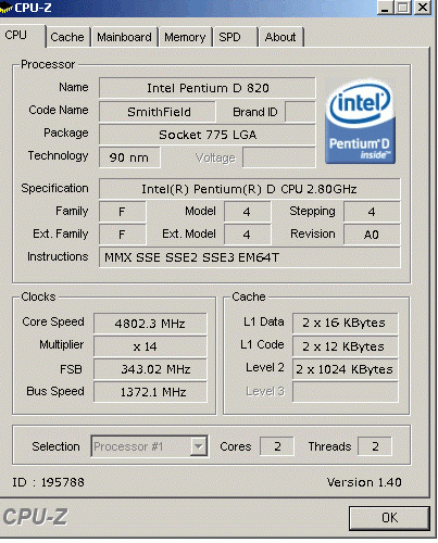 | Процессор (ядро) | Intel Pentium D (SmithField) |