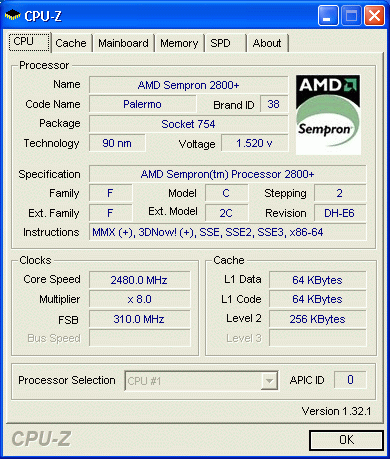 Результат разгона AMD Sempron (Palermo)