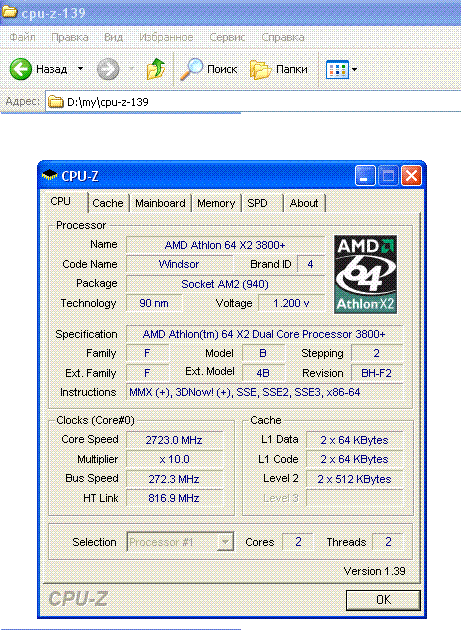 | Процессор (ядро) | AMD Athlon 64 X2 (Windsor) |