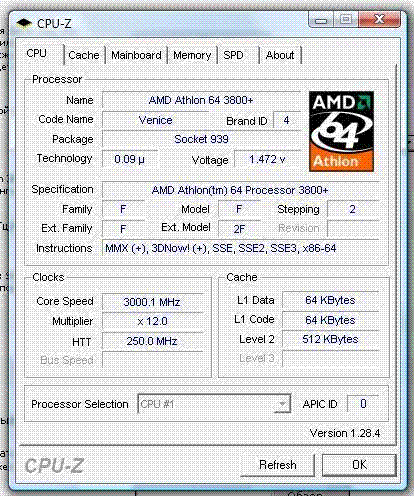 | Процессор (ядро) | AMD Athlon 64 (Venice) |