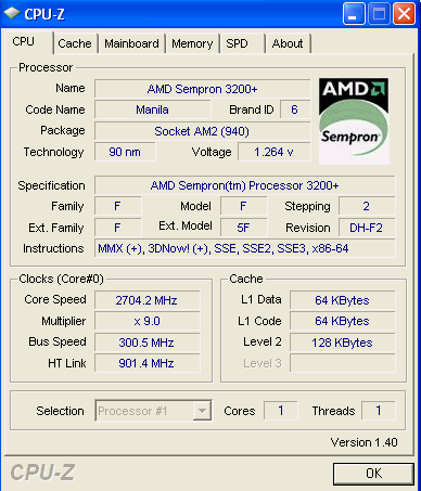 | Процессор (ядро) | AMD Sempron (Manila) |