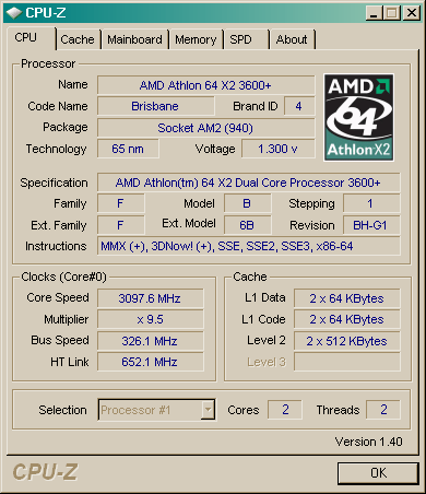 Результат разгона AMD Athlon 64 X2 (Brisbane)
