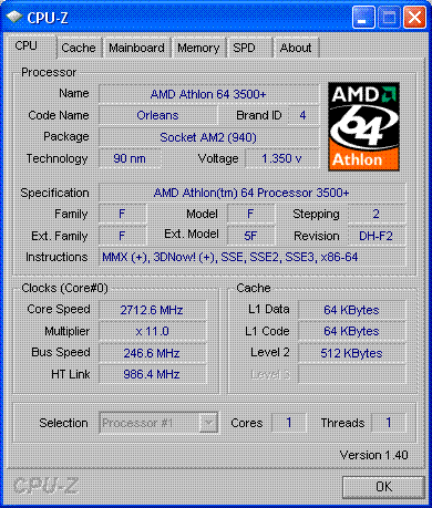 | Процессор (ядро) | AMD Athlon 64 (Orleans) |