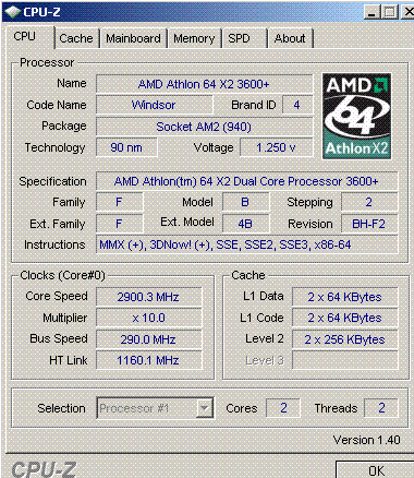 | Процессор (ядро) | AMD Athlon 64 X2 (Windsor) |