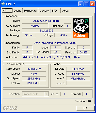 | Процессор (ядро) | AMD Athlon 64 (Venice) |