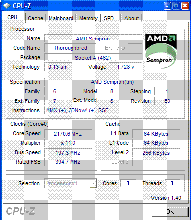 Результат разгона AMD Sempron (Thoroughbred)