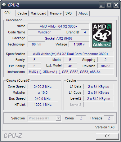Превращаем DualCore AMD Athlon 64 X2 3800+, 2000 MHz (10 x 200) в DualCore AMD Athlon 64 X2 4600+, 2400 MHz (10 x 240)