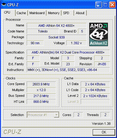 | Процессор (ядро) | AMD Athlon 64 X2 (Toledo) |