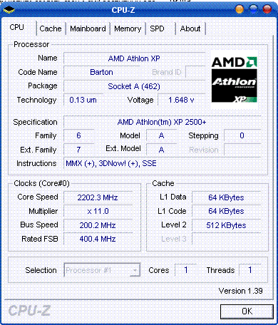| Процессор (ядро) | AMD Athlon XP (Barton) |
