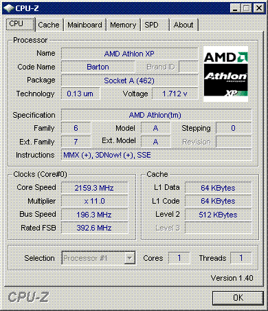 | Процессор (ядро) | AMD Athlon XP (Barton) |
