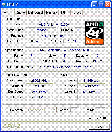 | Процессор (ядро) | AMD Athlon 64 (Orleans) |