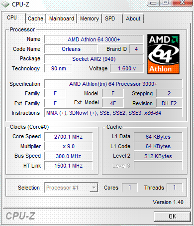 | Процессор (ядро) | AMD Athlon 64 (Orleans) |