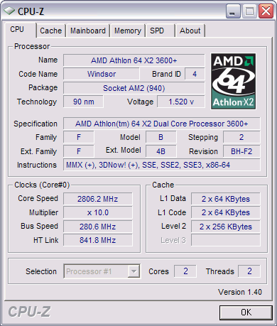 | Процессор (ядро) | AMD Athlon 64 X2 (Windsor) |