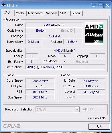 | Процессор (ядро) | AMD Athlon XP (Barton) |