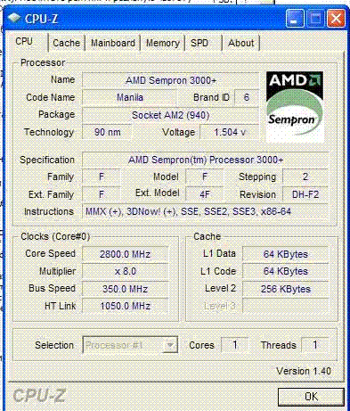 | Процессор (ядро) | AMD Sempron (Manila) |
