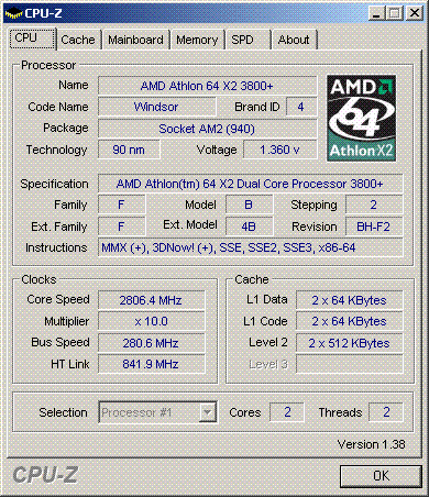 Результат разгона AMD Athlon 64 X2 (Windsor)