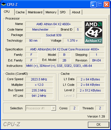 Результат разгона AMD Athlon 64 X2 (Manchester)