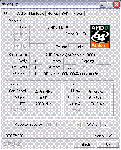 | Процессор (ядро) | AMD Sempron (Palermo) |
