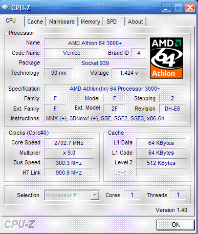 | Процессор (ядро) | AMD Athlon 64 (Venice) |
