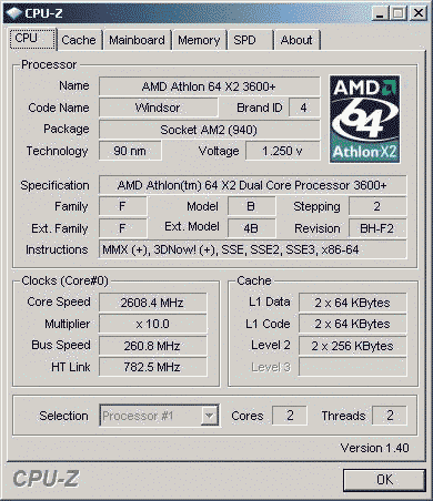 | Процессор (ядро) | AMD Athlon 64 X2 (Windsor) |