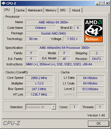Результат разгона AMD Athlon 64 (Orleans)