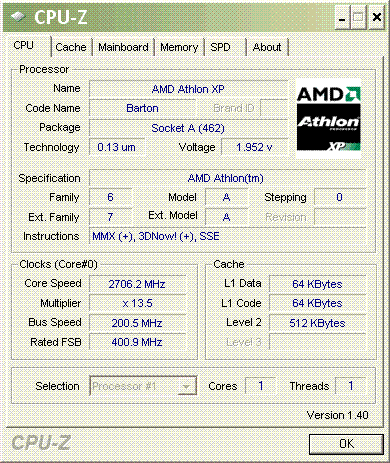 | Процессор (ядро) | AMD Athlon XP (Barton) |