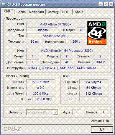 | Процессор (ядро) | AMD Athlon 64 (Orleans) |