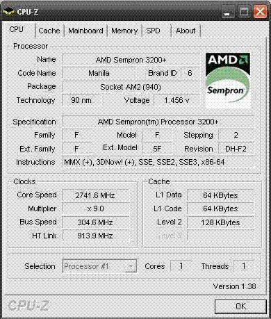 Результат разгона AMD Sempron (Manila)
